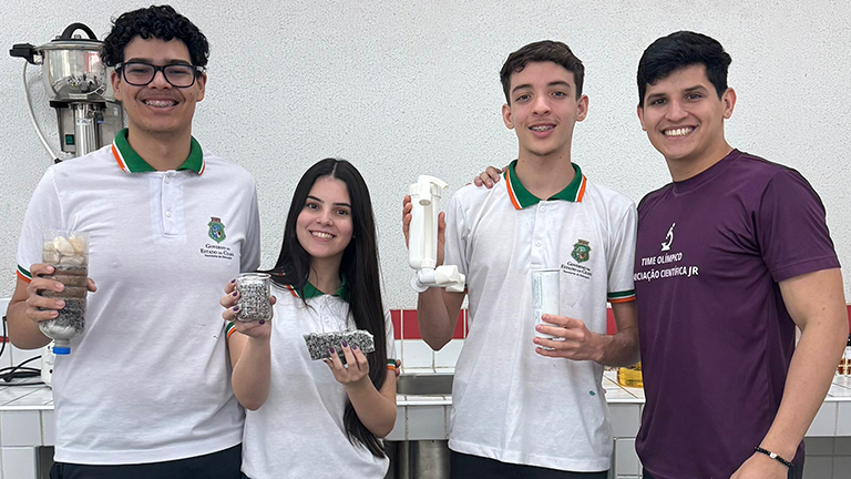 “Ficamos muito felizes por termos passado para a fase semifinal! Nossa cidade sofre com a falta de água potável para a população e a contaminação de quase todos os mananciais. Além disso, é um pólo de processamento de granitos e mármores. Tivemos a ideia de utilizar os rejeitos das rochas ornamentais para o tratamento de água. Nós esperamos aprender e aprimorar bastante nossos conhecimentos a partir da mentoria, orientações e rodas de conversa com outras equipes semifinalistas.”